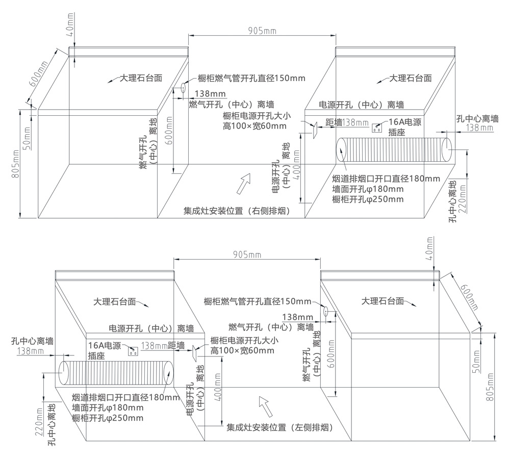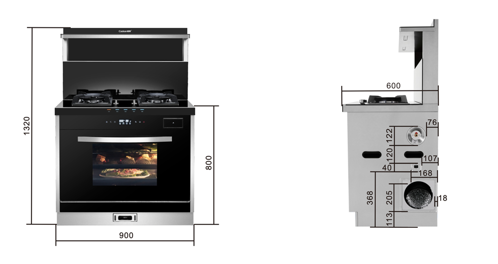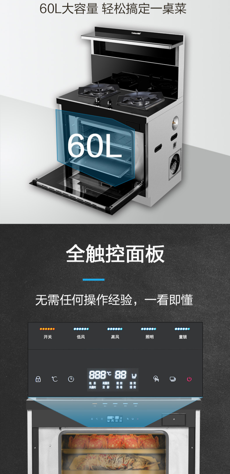煙灶+蒸烤一體,60L大容量,蒸汽平衡后排。