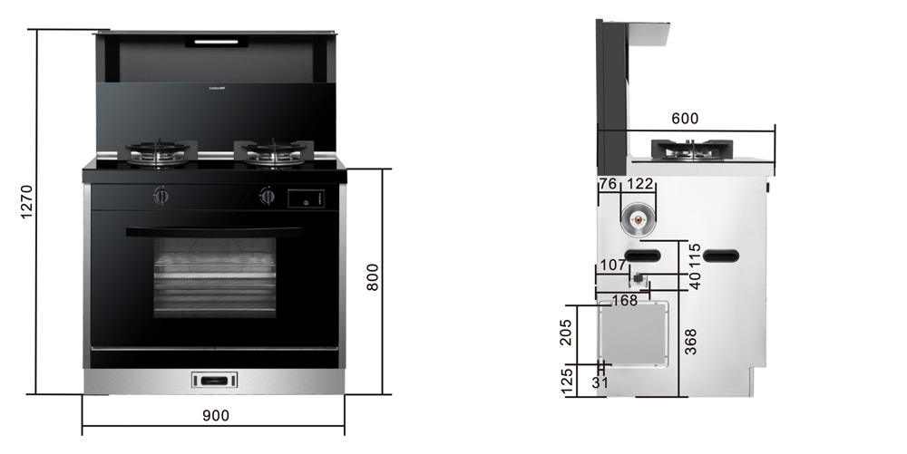 外形尺寸 900mm×600mm×1272mm