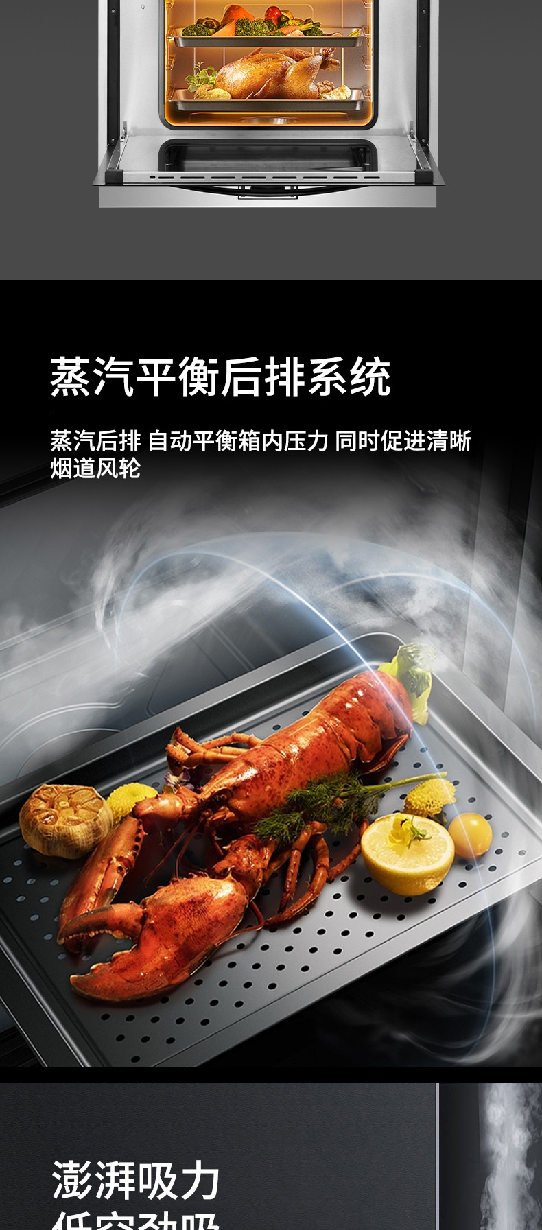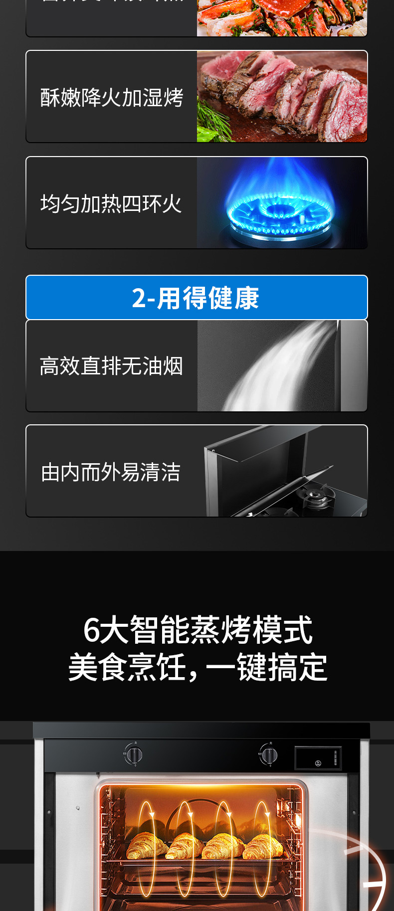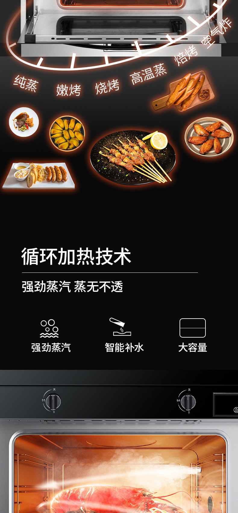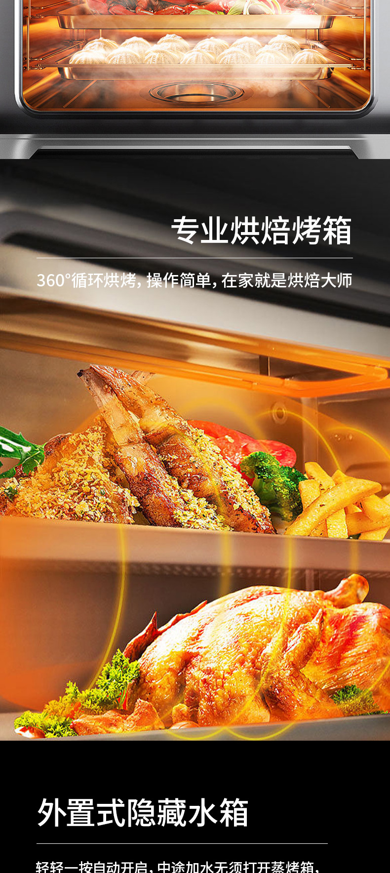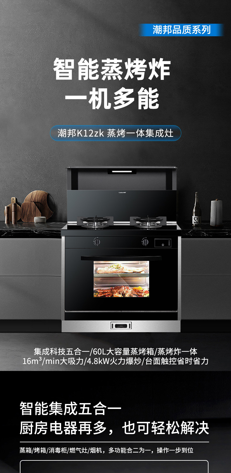 集成科技五合一,60L大容量蒸烤箱,蒸烤炸一體,臺面觸控省時省力