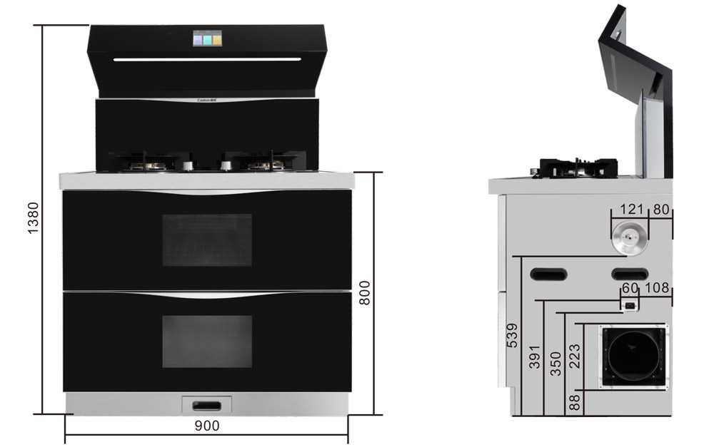 | 電磁爐功率 | 2000W(選配) | 油煙機(jī)噪音 | <71dB |